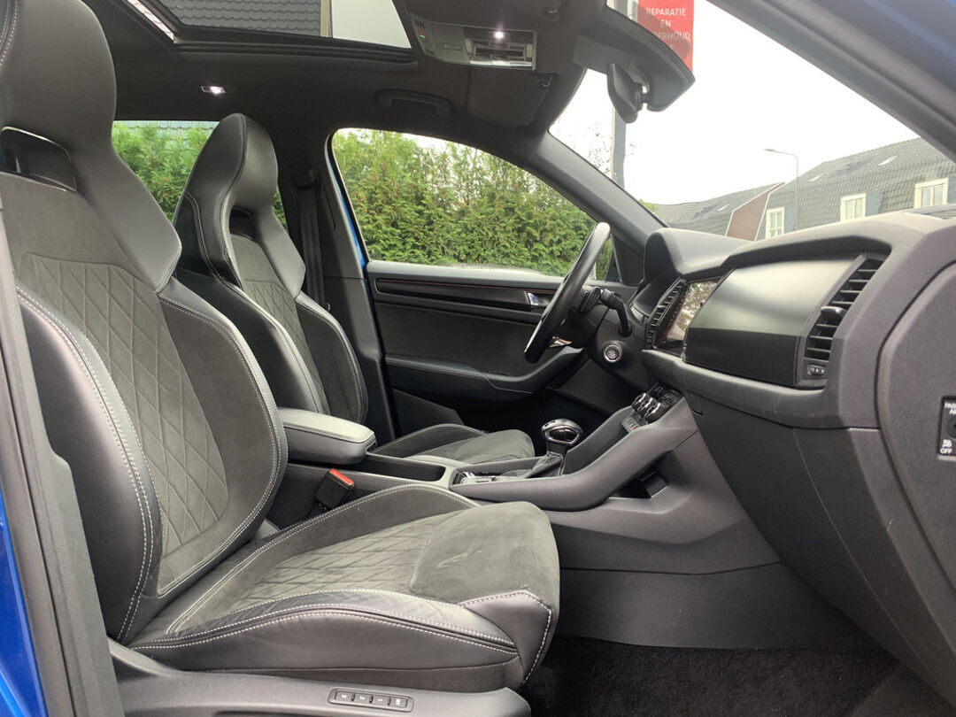 Dit is een auto die is ontworpen voor uw comfort. Deze ŠKODA Kodiaq is van het bouwjaar 2021. Hij heeft een benzinemotor en een automatische transmissie. Inladen is een eitje met de elektrisch bedienbare achterklep. En voor een frisse wind tijdens de rit is er het elektrisch bediende glazen panorama dak. Tijdens de koude maanden is stoelverwarming een voorziening die u niet wilt missen. Een verwarmd stuurwiel overbodige luxe? Wacht maar tot het kouder wordt! Verder is de ŠKODA uitgerust met: 20 inch lichtmetalen velgen, LED koplampen, zwarte hemelbekleding, dakspoiler, donker getint glas achter en in delen neerklapbare achterbank.