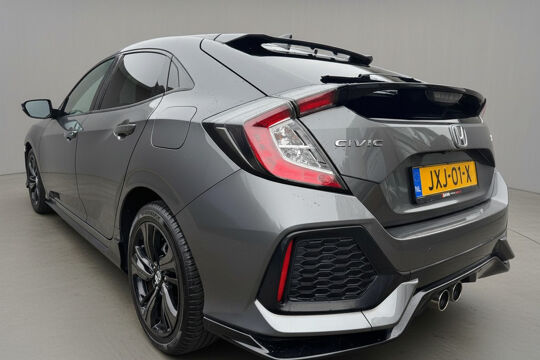 Het unieke van Japanse auto's als deze Honda Civic is dat ze zo goed doordacht zijn. Ieder onderdeel is doorontwikkeld, maar tegelijk is deze auto meer dan de optelsom van al zijn onderdelen. Deze auto biedt stijl, klasse maar bovenal kwaliteit. Een viercilinder benzinemotor en een automatische transmissie zorgen voor de uitstekende prestaties van deze auto. Doe maar luxe! Neem plaats in de verwarmbare voorstoelen en voel de weldaad in koude dagen. Het panoramadak geeft extra sfeer aan het interieur en biedt een prachtige doorkijk naar buiten. Op gure dagen is het ook achterin heerlijk bijkomen op de verwarmde achterbank. Tot de voorzieningen van deze auto behoren 17 inch lichtmetalen velgen, LED koplampen, adaptief dempingsysteem, zwarte hemelbekleding en in delen neerklapbare achterbank.