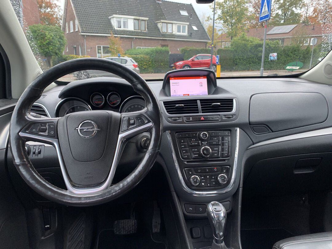 De achteruitrijcamera maakt inparkeren gemakkelijker dan ooit. In deze Mokka vindt u schakelaars op het stuur om het audio-installatiesysteem te bedienen en het full map navigatiesysteem. De automatische airconditioning zorgt onder alle omstandigheden voor een prettige temperatuur. De automatisch inschakelbare verlichting en regensensor zorgen dat onderweg automatisch de verlichting en de ruitenwissers worden ingeschakeld. Daarmee nemen ze u veel werk uit handen. Kleine ritjes, grote reizen - altijd een relaxte aankomst dankzij de cruise control. De Opel is standaard voorzien van: automatisch dimmende binnenspiegel, centrale deurvergrendeling met afstandsbediening en boordcomputer.