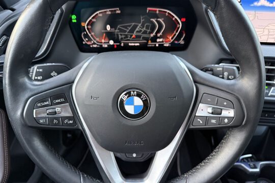 In één oogopslag heeft u alle benodigde functies onderweg in beeld, dankzij het slim ingedeelde digitale dashboard. Terwijl het full map navigatiesysteem de ideale route voor u uitstippelt, geniet u van de kwaliteit van het audio-installatiesysteem met DAB-ontvangst. De bediening is bovendien gemakkelijk via knoppen op het stuur of via spraak. De auto is ook uitgevoerd met automatische airconditioning. Soms heeft u meer parkeerruimte dan u denkt. Maar soms ook niet. De parkeersensoren vertellen precies hoeveel. Om de veiligheid onderweg te verhogen, heeft deze BMW zowel een automatisch inschakelbare verlichting als een regensensor aan boord, zodat hij zelf de verlichting en de ruitenwissers kan inschakelen. Ook cruise control, isofix-aansluiting, centrale deurvergrendeling met afstandsbediening en boordcomputer horen tot de voorzieningen op deze auto.