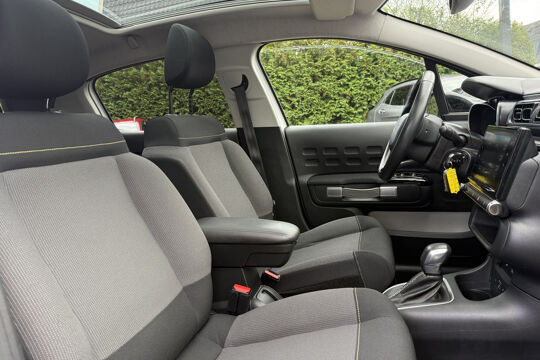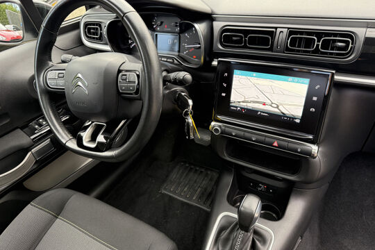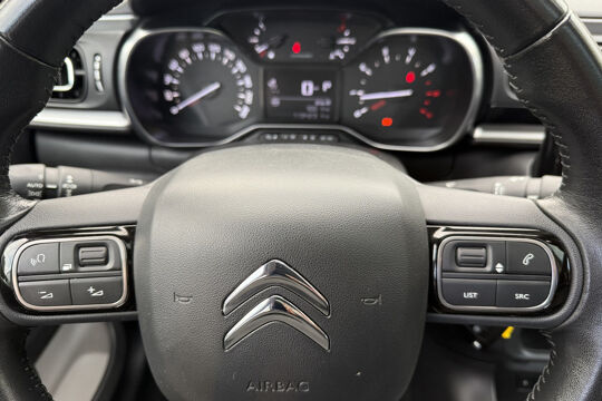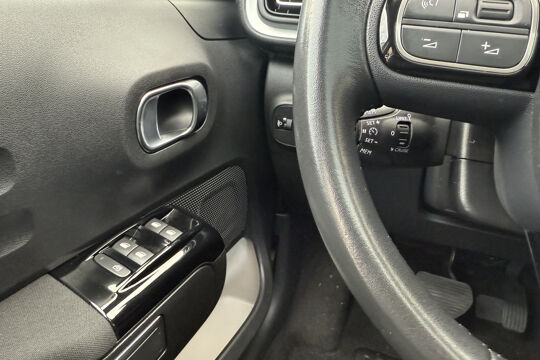 De nieuwste veiligheidssystemen komen in deze Citroën C3 samen. Onderweg zorgt verkeersborddetectie ervoor dat u geen waarschuwingsbord mist. Het Lane-keeping systeem let constant op en waarschuwt of corrigeert als u onoplettend over de lijnen van de rijstrook gaat. Forward collision warning waarschuwt bij een dreigende aanrijding en vermindert de gevolgen van een ongeval. Verder is deze auto uitgerust met hill hold functie, brake assist en bandenspanningcontrolesysteem.
