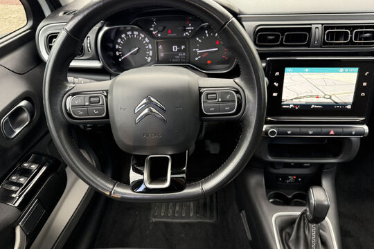 Met de achteruitrijcamera ziet u wat er achter de auto gebeurt. Zo rijdt u moeiteloos achteruit. Het infotainmentsysteem bedient u met uw vingers of met uw stem, met dank aan de geïntegreerde stembediening. Deze Citroën C3 is voorzien van remote services. Via uw smartphone bedient u diverse functies ook op afstand en krijgt u informatie over de status van uw auto. Nooit meer de weg zoeken en ontspannen arriveren bij uw reisdoel. Met het full map navigatiesysteem zit u veilig en ontspannen in de auto. De achteropkomend verkeer waarschuwing geeft een signaal als degene achter u te dicht op u zit. Ook handig en veilig bij het wisselen van rijbaan. De uitrusting van deze auto is met automatische airconditioning, DAB ontvangst, regensensor, cruise control, automatisch dimmende binnenspiegel en lederen stuur behoorlijk compleet.