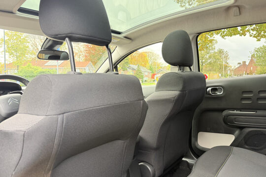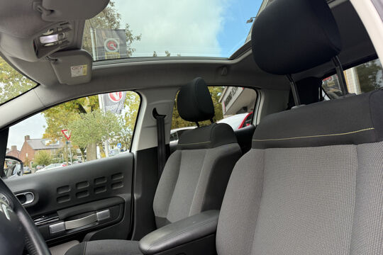 Het doordachte concept van de Citroën C3 staat garant voor ruimte en rijcomfort. De motor is zuinig maar pittig, en maakt een vlotte rijstijl mogelijk. Het glazen panoramadak biedt u een breed zicht op de omgeving. In deze Citroën profiteert u onder andere ook van: 17 inch lichtmetalen velgen, LED-dagrijverlichting, donker getint glas achter en in delen neerklapbare achterbank.