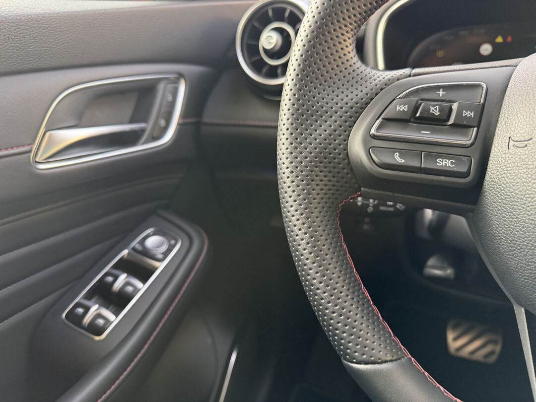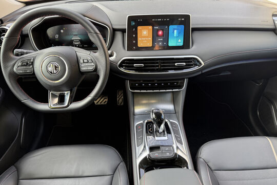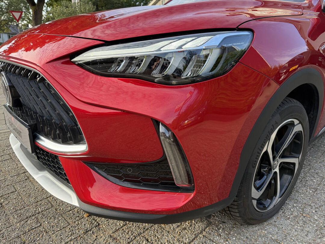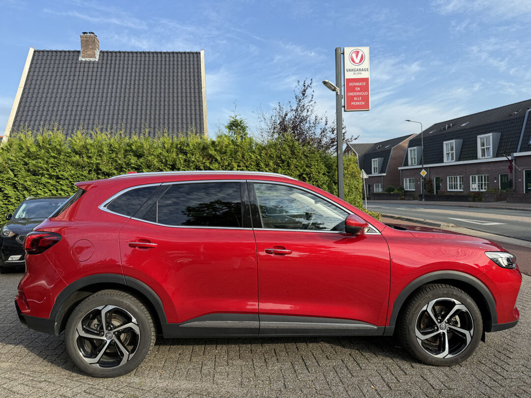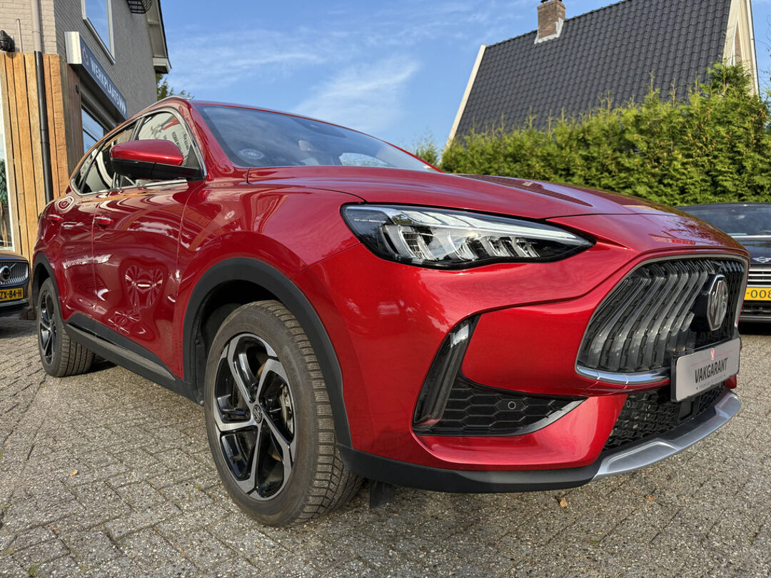 Deze MG EHS maakt een voortreffelijke indruk. Hiermee mag je gezien worden in de stad én op de weg! De hybride motor van deze MG EHS is de ideale combi van zowel brandstof- als elektromotor. Minder vaak naar de pomp, maar ook zuinig en schoon door de stad! Het kan niet op: een fraai lederen interieur, zeeën van licht met het elektrisch bediende glazen panorama dak en probleemloos in- en uitladen met de elektrisch bedienbare achterklep. De verwarmbare voorstoelen zijn een heerlijke extra optie, waarmee u uzelf en uw bijrijder een groot plezier doet. De strakke sportstoelen hebben niet alleen de looks, maar bewijzen ook hun functie als u wat meer vraagt in de uitdagende bochten. Verder is de MG uitgerust met: 18 inch lichtmetalen velgen, LED koplampen, donker getint glas achter, in delen neerklapbare achterbank, LED-achterlichten en verstelbare lendensteunen.