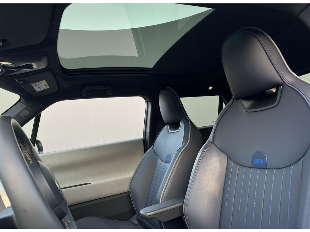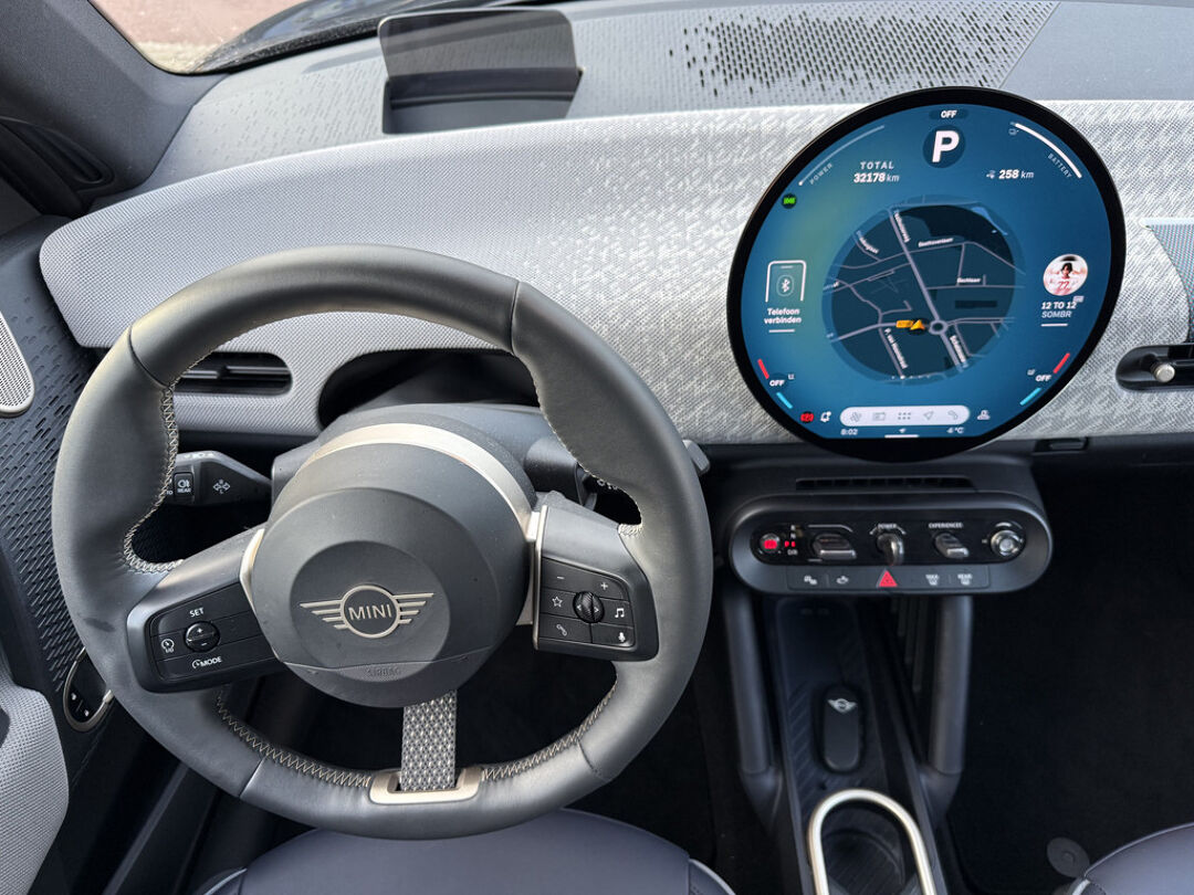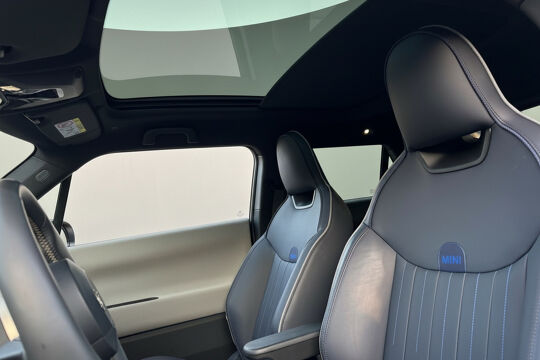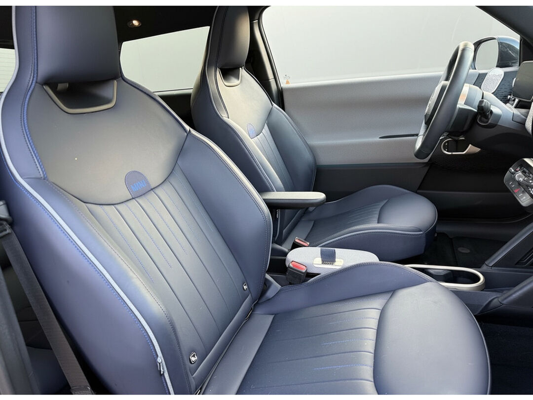 Een nieuw tijdperk breekt aan. Emissievrij rijden is niet langer toekomstmuziek met deze elektrische MINI. De aandrijflijn maakt gebruik van de meest moderne accutechniek, zodat het opladen in zo kort mogelijke tijd gebeurt. Het rijbereik van deze auto is groot genoeg om er de meest voorkomende dagelijkse ritten mee te maken. Een krachtige motor geeft deze auto zijn sportieve prestaties. Op het lijstje aantrekkelijke extraatjes vallen meteen op: het lederen interieur en de elektrisch bedienbare achterklep. 's Winters op pad gaan kan een behoorlijke uitdaging zijn. Daarom is deze MINI voorzien van weldadige verwarmbare voorstoelen. In weer en wind een cabriosensatie? Dat kan met het riante glazen panoramadak. Zo'n verwarmd stuurwiel is een comfortabele extra, zeker in de winter. Bij de uitrusting van deze auto horen onder meer 18 inch lichtmetalen velgen, Full LED koplampen, donker getint glas achter, in delen neerklapbare achterbank, LED-achterlichten en snelheidsafhankelijke stuurbekrachtiging.