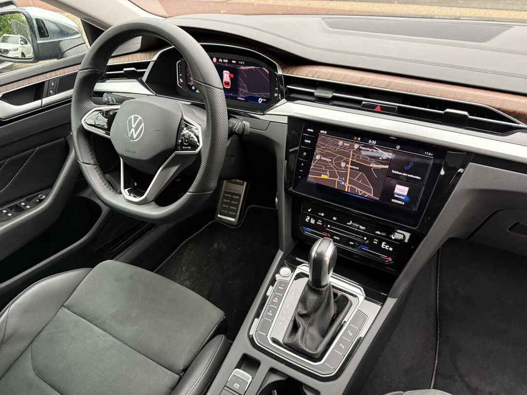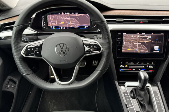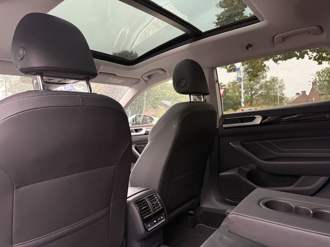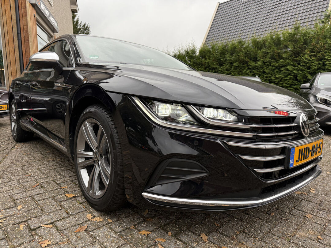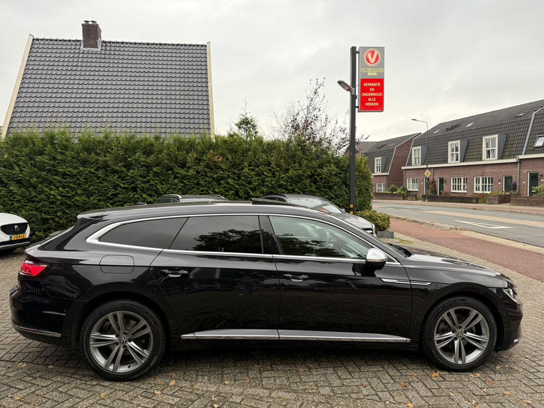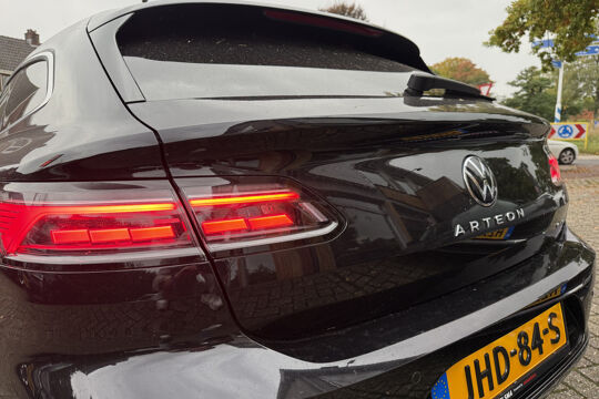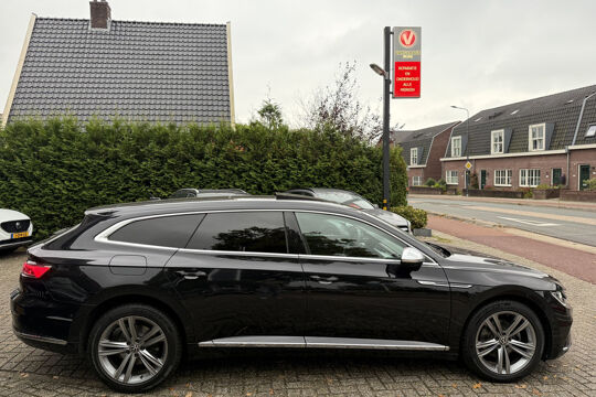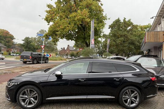 Het mooie van een Volkswagen is dat hij altijd bijzonder is, door zijn techniek, zijn rijkwaliteiten en zijn comfort. Maar tegelijk voelt hij ook heel vertrouwd. In een Volkswagen voelt u zich meteen thuis. Ook in deze Arteon Shooting Brake. Het zijn de degelijkheid van de constructie en de doordachtheid van het ontwerp die ervoor zorgen dat een Volkswagen jarenlang begeerlijk blijft. Dat is duidelijk te zien aan deze Arteon Shooting Brake, waarvan de onderhoudshistorie bekend is. Met de pittige benzinemotor en de automatische transmissie is autorijden een waar genoegen. Van een cabrio heeft u alleen 's zomers plezier. Maar het elektrisch bediende glazen panorama dak van deze auto betekent het hele jaar genieten. Net zoals u elke dag het gemak ervaart van de elektrisch bedienbare achterklep. De massagefunctie van de verwarmbare voorstoelen is een heerlijke extra optie, waarmee u uw rug en die van de bijrijder een groot plezier doet. De sportstoelen zien er niet alleen prachtig uit, maar zijn ook functioneel, zoals u kilometer na kilometer zult merken. Laat ze achterin ook maar genieten: deze Volkswagen Arteon Shooting Brake is uitgevoerd met een verwarmde achterbank. De geavanceerde matrix LED-verlichting in de koplampen levert maximaal helder zicht en past zich subtiel aan zodra er een tegenligger komt. Zonder lichtkwaliteitsverlies! Tot de uitrusting van deze Volkswagen behoren ook 18 inch lichtmetalen velgen, halflederen bekleding, adaptief dempingsysteem, warmtewerend glas, in delen neerklapbare achterbank en LED-achterlichten.